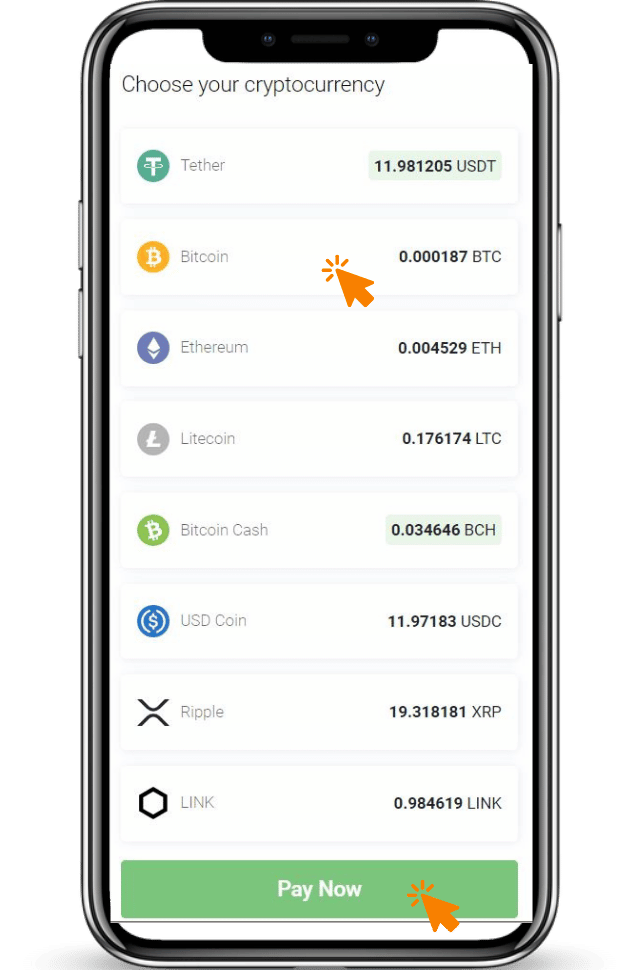 After that, choose ‘Cryptocurrency’ as your preferred payment method. You’ll see various options, but crypto is the way to go.